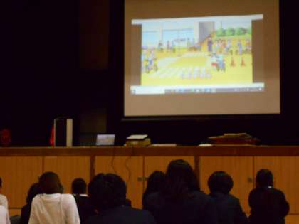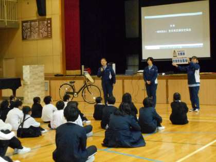 大阪府交通安全協会の方に来ていただき、自転車の正しい乗り方について学びました。