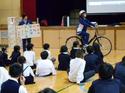 学校周辺は車の往来がはげしいです。学んだことをしっかり守って安全に楽しく乗りましょう。