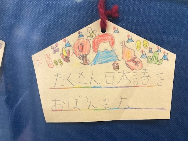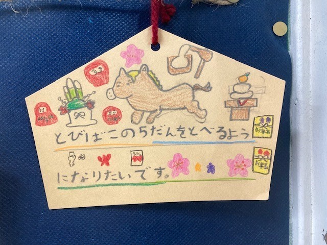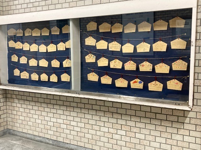 本年もよろしくお願いします。玄関には全校児童の今年の決意が飾られていました。