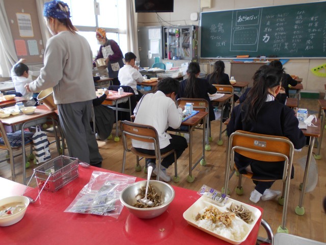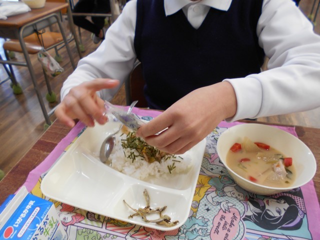 れんこんのちらしずし(きざみのり) ぞう煮 ごまめ 牛乳