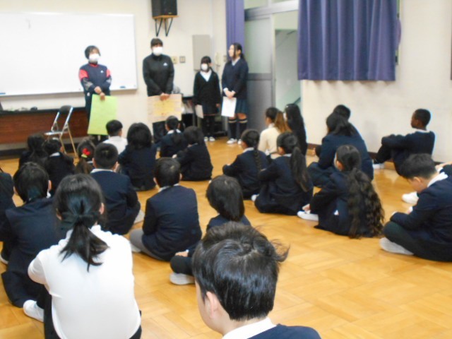 今週は給食週間です。健康委員から各学年で作成したメッセージを調理員さんに渡し、お礼を言いました。