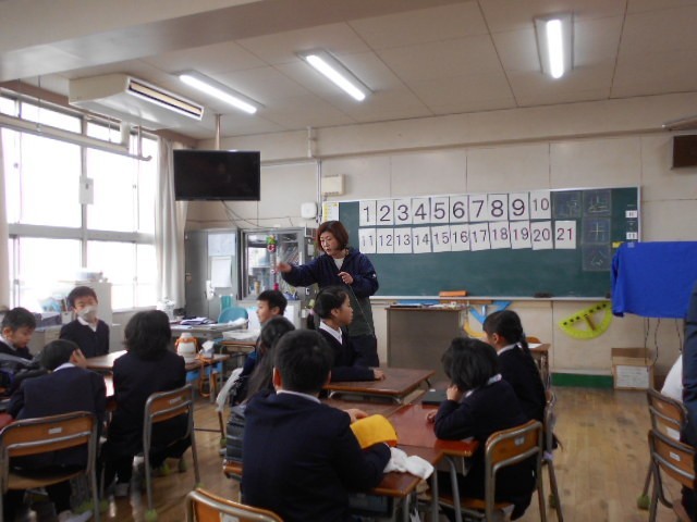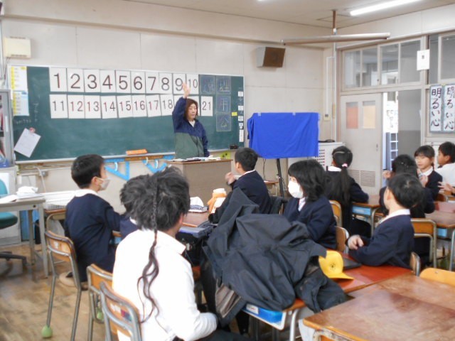 黒板にたくさんの数字がはってありますが、算数ではありません。英語で数字を言ういろんなゲームを班でしていました。