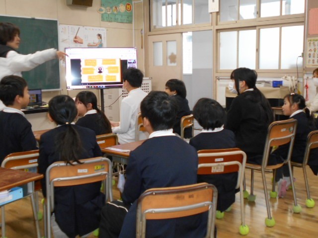 今日の児童集会も、たて割り班で教室に集まり、リモートで集会委員の出すクイズに答えます。