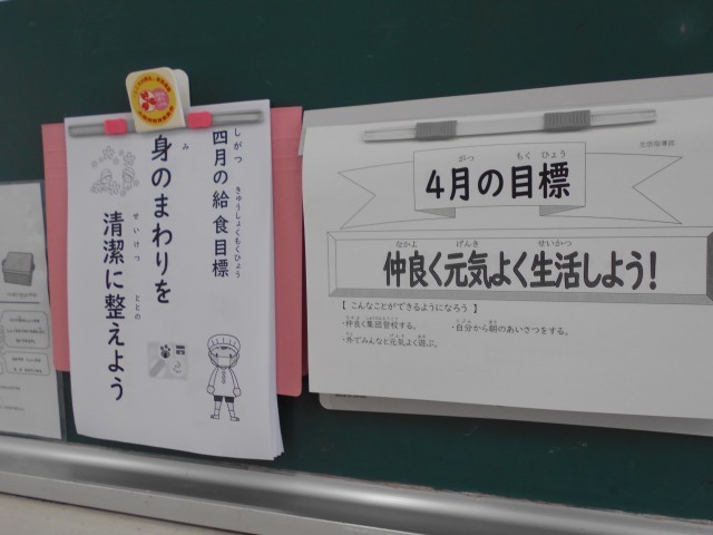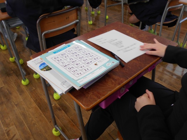 教室では、担任の先生のお話をきき、新しい教科書を受け取りました。