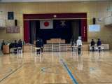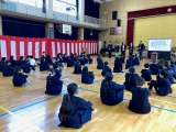 4時間目の式練習。緊張した様子の6年生。全体の流れを確認します。