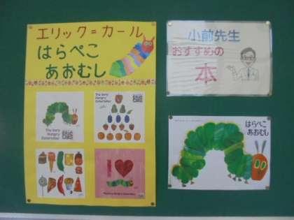 学校図書館補助員の小前 恭則先生が、絵本を紹介してくださっています。今年度も、子どもたちが本に親しめるよう、ご尽力くださいます。