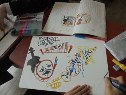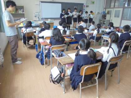(上)国語「こわれた千の楽器」の朗読をしています。
