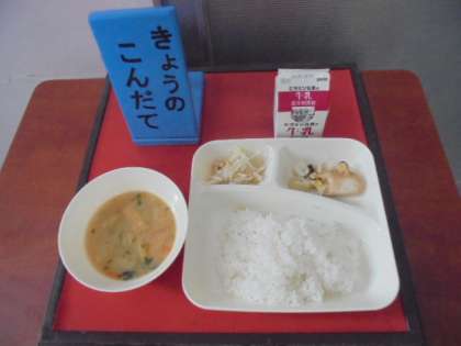 今日の献立は、焼きとり、みそ汁、もやしのゆずの香あえ、ごはん、牛乳です。