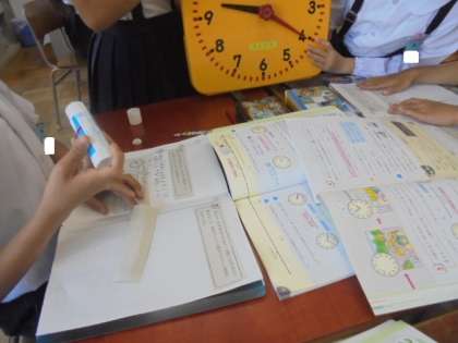 (下)算数「時こくと時間のもとめ方を考えよう」の学習です。