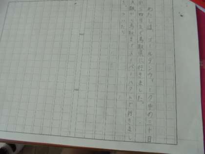 (上)作文を書いています。