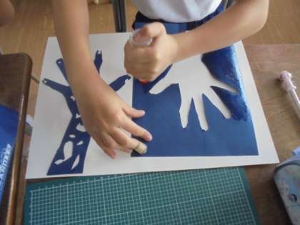 (下)カッターの使い方を練習しています。