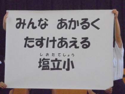 スローガンは「みんな あかるく たすけあえる 塩草立葉小学校」です。