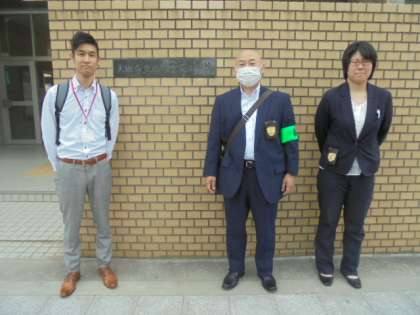 (下)左から、NTTドコモケータイ安全教室の講師。浪速警察署少年係の白井さん、湯之前さん。