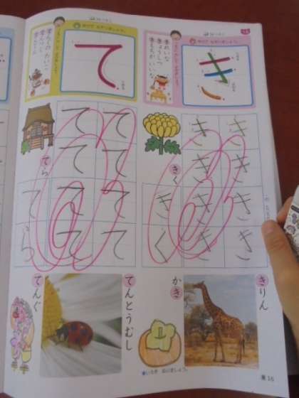(中)「き」と「て」を習いました。