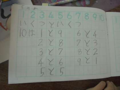 「10は、いくつといくつ?」先生がわかりやすいクイズにしています。