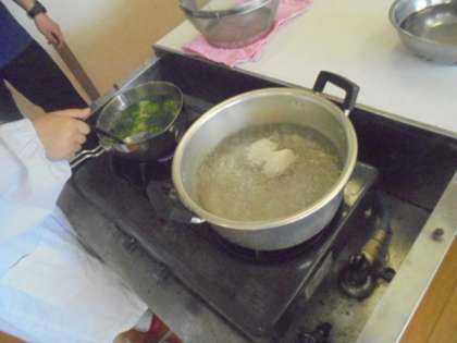 (中・下)ゆで卵とブロッコリー、ドレッシングを作ります。