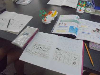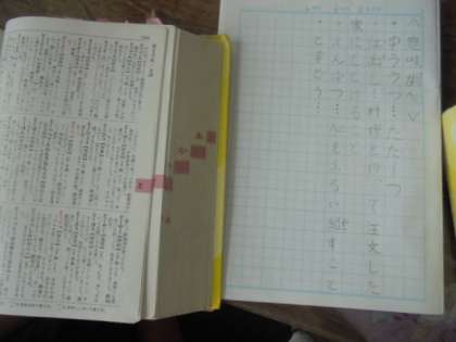 (下)国語辞典を使って、ことばの意味調べをしています。