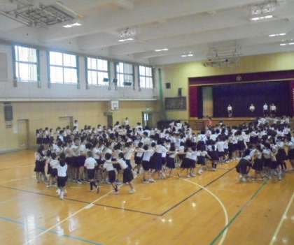 今朝の児童集会では、じゃんけん列車で盛り上がりました。