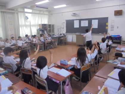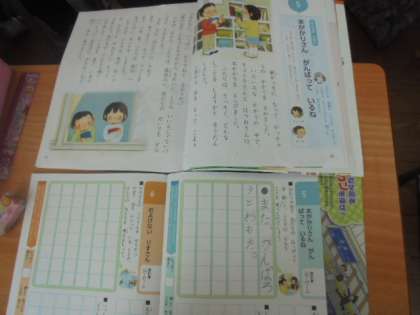 (下)道徳科「本がかりさん がんばって いるね」の学習です。