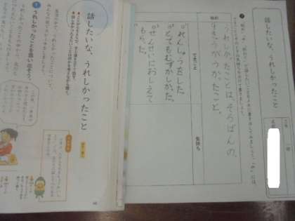 (上)国語「話したいな、うれしかったこと」の学習です。