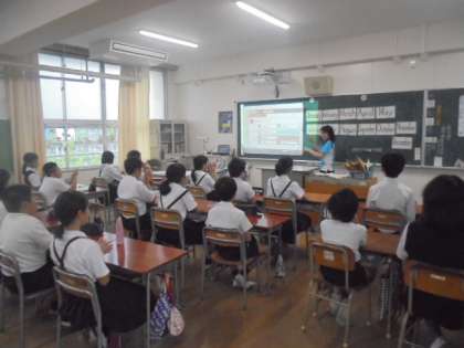 (下)外国語活動で、1月から12月までを英語で習っています。