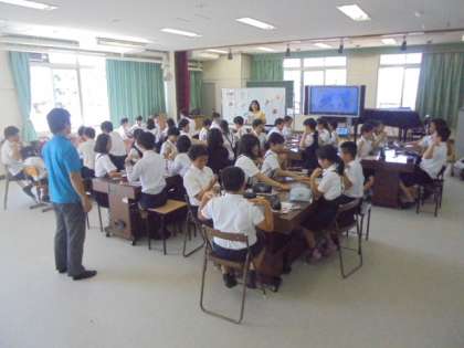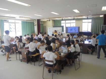 多目的室で、外国語活動のアクティビティーを楽しんでいます。