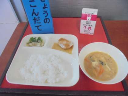 鶏肉のおろしじょうゆかけ、みそ汁、野菜いため、ごはん、牛乳です。