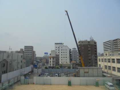 運動場の南側に新校舎を建設中です。来年3月に完成予定です。