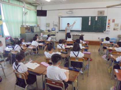 国語「『は、へ、を』をつかってぶんをかこう」の授業です。