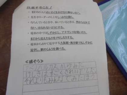 教室に戻ってから、見学したことをまとめました。