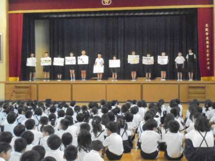 放送委員会の皆さんが、子どもたちから集めた「昼休みに流してほしいリクエスト曲」ベスト20を発表しました。1曲ずつ、振り付けをしながら楽しく発表してくれました。