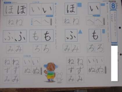(上)ひらがなのかたちを練習しています。