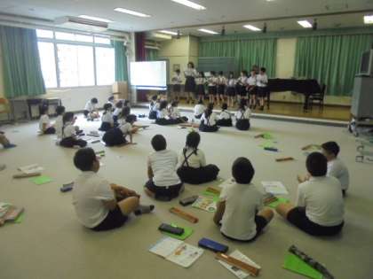 音楽「いろんな木の実」の歌と打楽器を楽しんでいます。