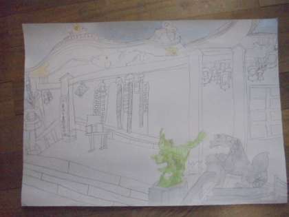 (下)難波八阪神社の絵ができつつあります。