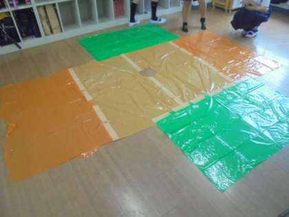 (下)ビニルを広げて・・。お楽しみ会の準備のようです。