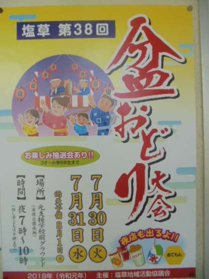 7月30日(火)、31日(水)に塩草盆踊りが行われます。場所は、元難波支援学校前グラウンドです。地域やPTAの皆様、子どもたちのためにさまざまな準備をしてくださり、ありがとうございます。