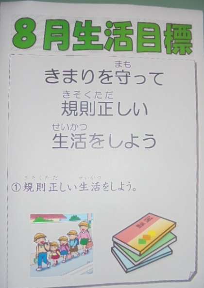 月曜日から2学期が始まります。「規則正しい生活」を過ごせるよう、子どもたちを励ましたいと思います。