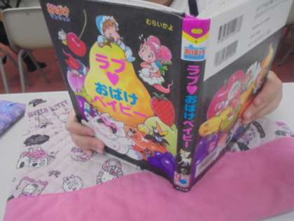 (中)図書館で本を読んでいます。怖いお話ではないそうです。