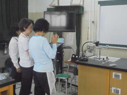 ICT教育支援員の方を交えて、タブレット端末を活用した授業準備をしています。