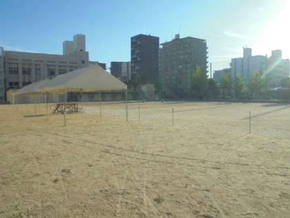 放課後、教職員の皆さんが難波中学校へ行き、運動会準備をしました。テントを立てたり、ラインを引いたり、抜群のチームワークで進みました。テントをはじめたくさんの備品を貸してくださった難波中学校の皆様、本当にありがとうございました!