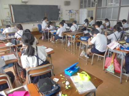 (上)家庭科の小物づくりです。