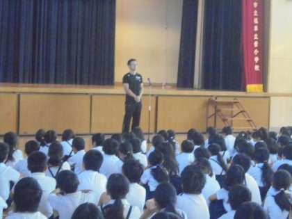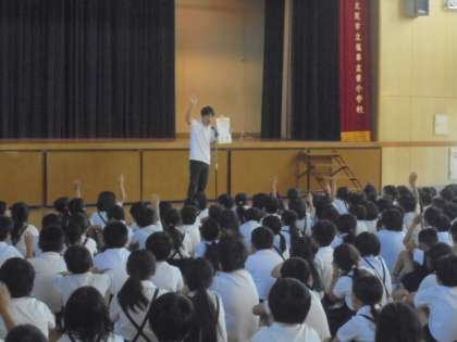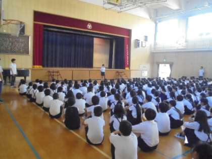 (中)生活指導部長の高嶋先生から、安全な生活についてお話です。