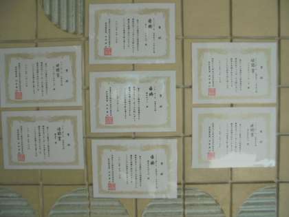 玄関に、フレンズ・カップ・オブ・ナニワの表彰状を貼り出しています。