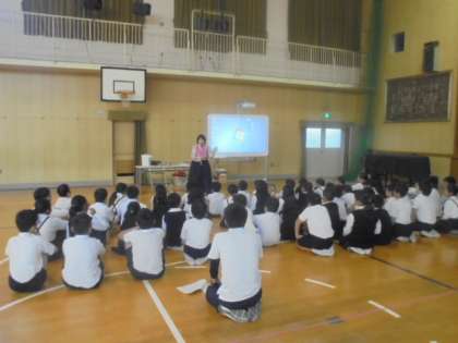 全学年で取り組んでいる「となりの国の学習」です。講師(ソンセンニム)は、林京美先生です。11月20日のコリアタウン見学についても、お話しくださいました。