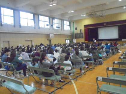 4月から小学校へ入学する子どもたちが集まっています。この後、校医先生の検診などを行います。