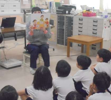 体重測定の合間に、食物アレルギーについての絵本を読んでます。