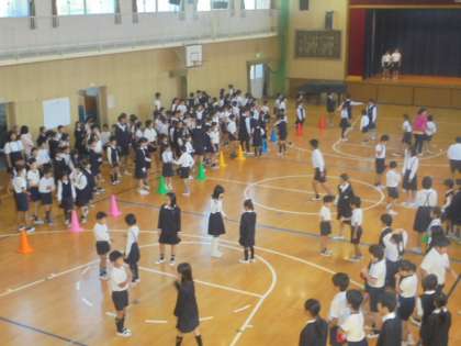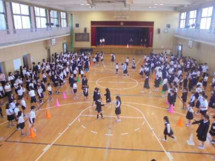 今朝の児童集会は、たてわりグループによるじゃんけんゲームです。