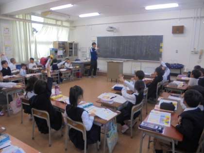 (上)道徳「くりの み」の学習です。