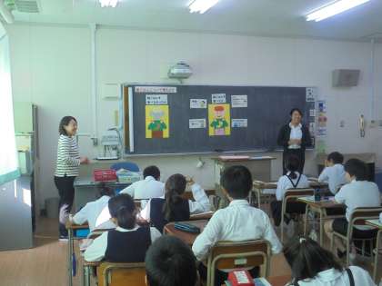 (上・中)栄小学校の栄養教諭 大浦先生による特別授業です。