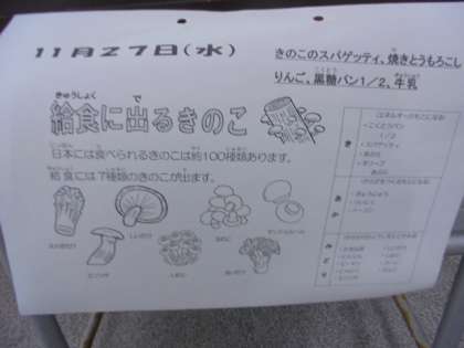 今日の給食は、きのこのスパゲッティ、焼きとうもろこし、りんご、パン、牛乳です。